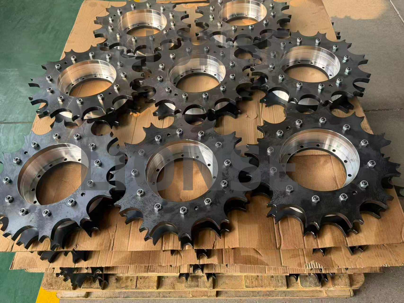 У погледу процеса производње, прво, челик је пластични деформисан под високим притиском прецизним ковањем, како би се побољшала унутрашња структура, елиминисали недостаци и побољшала густина и механичка својства делова; Затим се спроводи научна топлотна обрада, каљење да би се постигла уједначена висока тврдоћа на површини и унутрашњој страни челика, и каљење да би се елиминисао напон гашења и прилагодила жилавост, постижући оптималну равнотежу између чврстоће и жилавости. Коначно, високо прецизна ЦНЦ машина алатка се користи за извођење стругања, глодања, бушења и друге обраде на термички обрађеном празном делу главчине точка и стриктно контролише тачност како би се осигурало да толеранција димензија и толеранција положаја облика задовољавају високи стандард, испуњавају захтеве за високопрецизну монтажу ланчаника и погонског вратила и осигуравају прецизну димензију и добру површину површине.